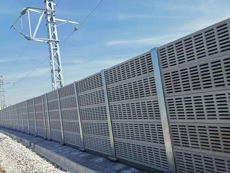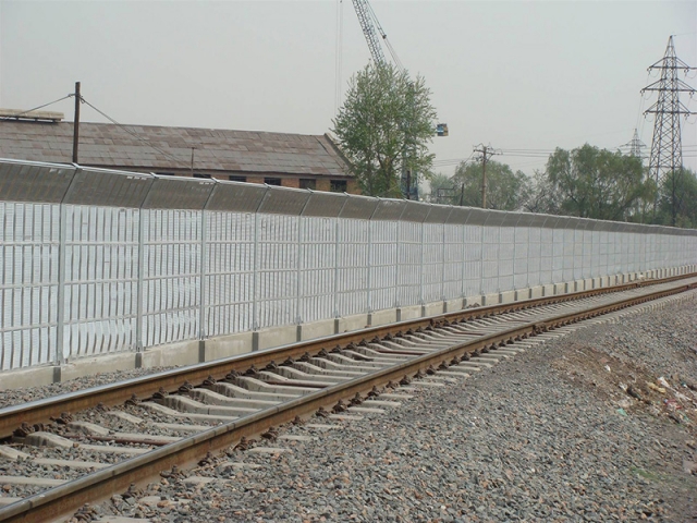 鐵路聲屏障由鋼結構立柱和吸隔聲屏板兩部分組成,立柱是聲屏障的主要受力構件,它通過螺栓或焊接固定在道路防撞墻或軌道邊的預埋鋼板上;吸隔聲板是主要的隔聲吸聲構件,它通過高強彈簧卡子將其固定在H型立柱槽內,形成聲屏障。聲屏障的設計已較為充分地考慮了高架高速道路、城市輕軌、地鐵的風載、交通車輛的撞擊安全和全天候的露天防腐問題。它外形美觀大方,制作精致,運輸、安裝方便,造價低,使用壽命長,特別適用于高架高速道路和城市輕軌、地鐵的防噪聲使用,是現代化城市理想的隔聲降噪設施。